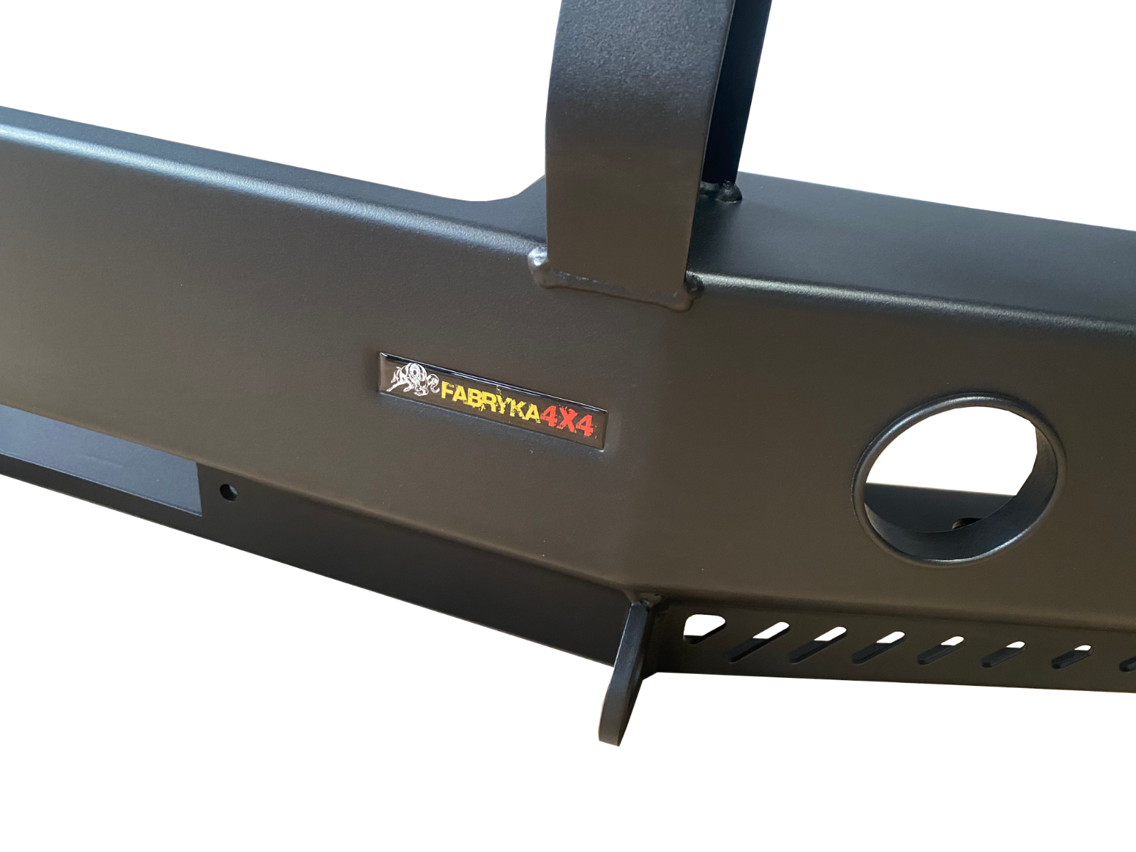 De bumper wordt geproduceerd uit 4 mm dikke staalplaat met behulp van Lasersnijders en CNC kantbanken. De lierplaat en bevestigingsbeugels, waarmee de bumper aan het chassis wordt geschroefd, worden van 5 mm dikke staalplaat gemaakt en stevig in de bumper gelast, om optimale sterkte te garanderen. Tenslotte ondergaat de bumper een grondige anti-roest behandeling, bestaande uit een zinkpoederprimer en poedercoating, waardoor de bumper een mooie afwerking krijgt.