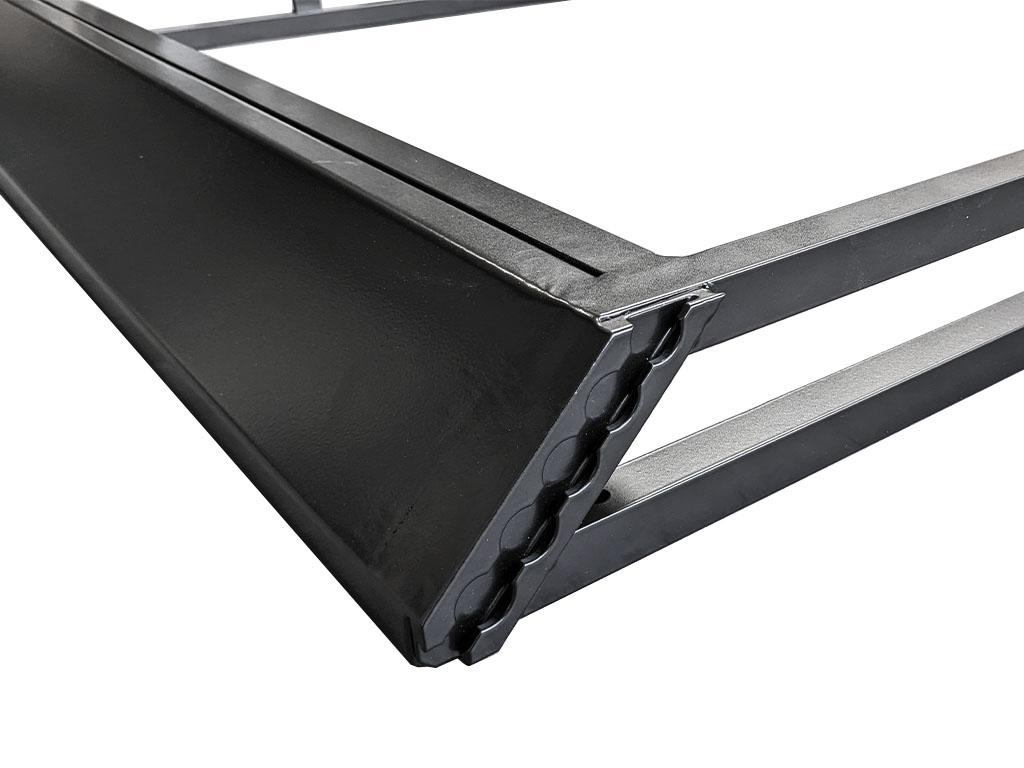 Aan elke zijde zijn vier airline rails gemonteerd. Dit breed gebruikte montagesysteem biedt gebruiksvriendelijke en betrouwbare bevestigingsmogelijkheden. De voorzijde van dit dakrek is schuin afgewerkt om aerodynamischer te zijn en geluid tijdens het rijden te minimaliseren.