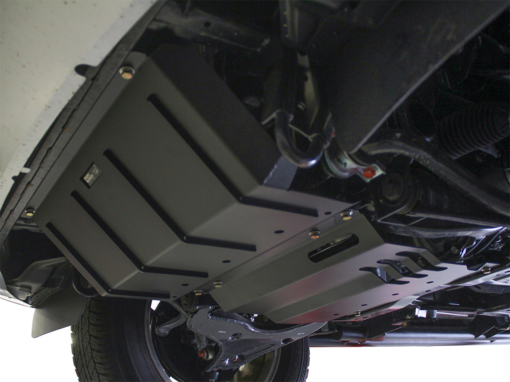 Beschermt de versnellingsbak en de verdeelbak van de Mitsubishi Pajero Sport tegen schade. De beschermplaat wordt op de bestaande montagepunten geplaatst, er zijn geen aanpassingen nodig aan de wagen.