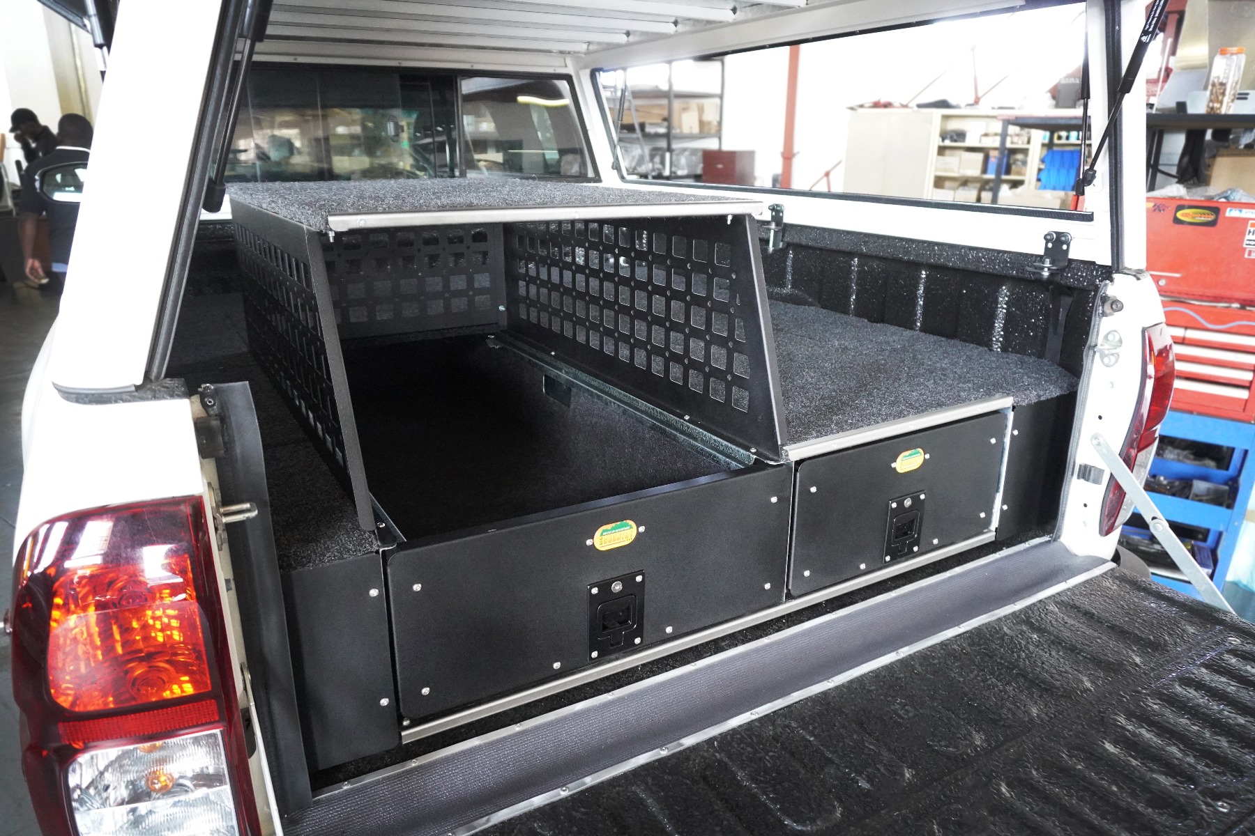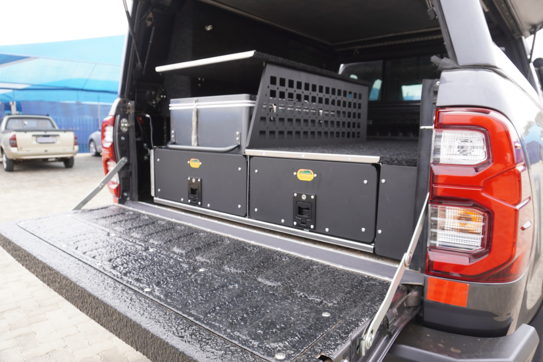 De bekende en beproefde Big Country ladesystemen bieden de mogelijkheid om uw koelkast in een van de lades te bevestigen. Dit zorgt voor een lager toegangspunt dan bij het gebruik van een fridge slide bovenop het ladesysteem. Om de ruimte te maximaal te benutten wilt u de ruimte boven de koelkast ook kunnen gebruiken. Dit is mogelijk met de Big Country Koelkast Bescherming