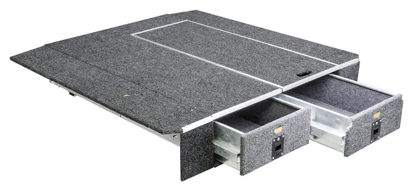 De lades lopen op afgedichte rollagers en kunnen maar liefst 200,0 kg per lade dragen. De lades zijn aan de binnenzijde en bovenzijde voorzien van tapijt.