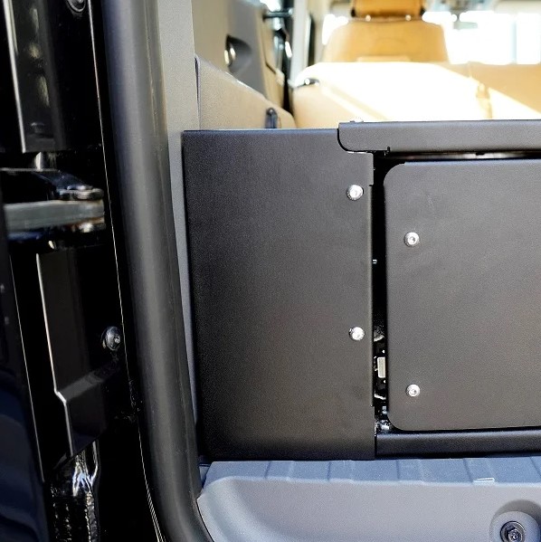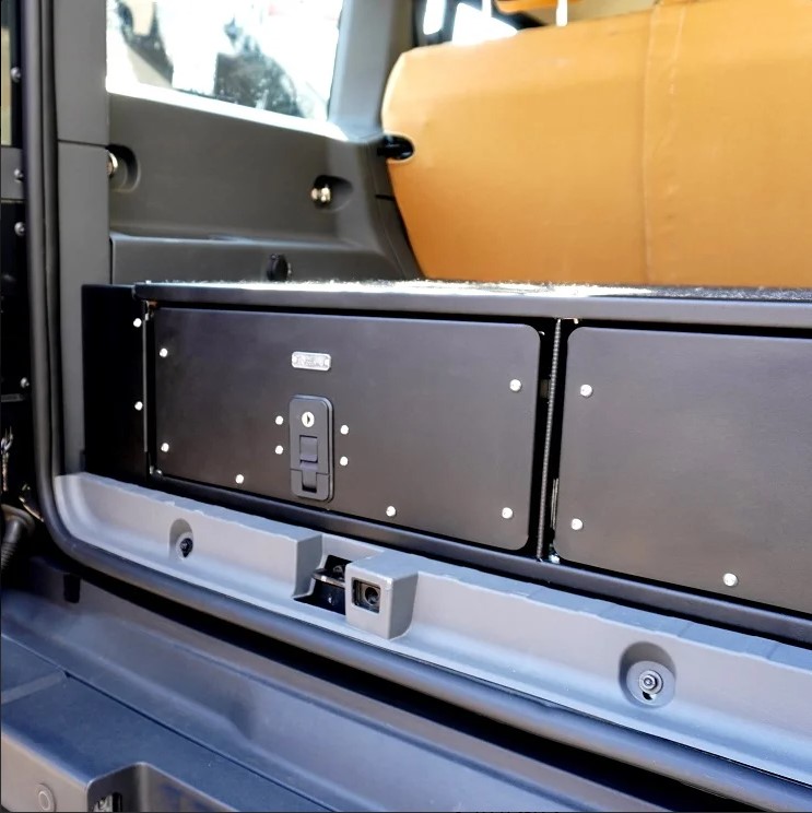Aan beide zijkanten zijn afneembare zijpanelen toegevoegd die perfect in uw Grenadier passen. Hiermee heeft u gemakkelijk toegang tot ruimte die anders verloren zou gaan. Perfect om een compressor of extra accu onder te monteren.