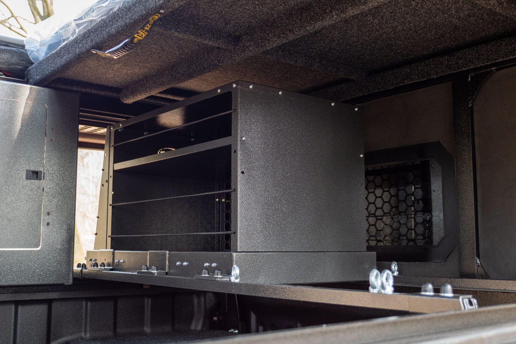 De Bushtech Bush Cabin Ammobox Holder is speciaal ontworpen voor integratie in de Bushtech Bush Cabin en biedt een betrouwbare oplossing voor het veilig opbergen van maximaal 3 ammoboxen. U kunt uw uitrusting makkelijk toegankelijk maken en te organiseren met een zijwaartse schuifbeweging van de Ammoboxen. De houder wordt gemonteerd voorin de Bush Cabin en wordt standaard geleverd met zes oogmoeren en bijbehorende bouten, waarmee de ammoboxen veilig vastgezet kunnen worden tijdens het reizen. De unit is ontworpen om eenvoudig in en uit het frame van de Bush Cabin te schuiven, zodat snelle installatie of verwijdering mogelijk is wanneer dat nodig is. Naast de opslag van ammoboxen dient dit stevige platform ook als uitstekende basis voor het monteren van een pantry in de Bush Cabin, waarmee u uw Bushcabin nog comfortabeler en veelzijdiger maakt.