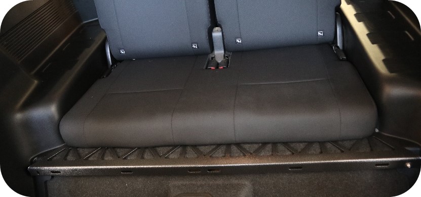 Als u de stoelen verwijdert, ontstaat er extra opbergruimte onder de false floor, waar u kleinere spullen kunt opbergen. Deze ruimte is gemakkelijk toegankelijk via een luik in de false floor.