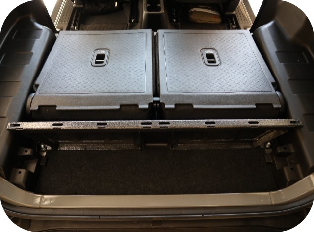 De vloer kan worden geïnstalleerd met of zonder (ingeklapte) stoelen. Aangezien de vloer uit twee delen bestaat, is het zelfs mogelijk om slechts de helft te installeren en één stoel te gebruiken, zodat je met drie personen kunt reizen.