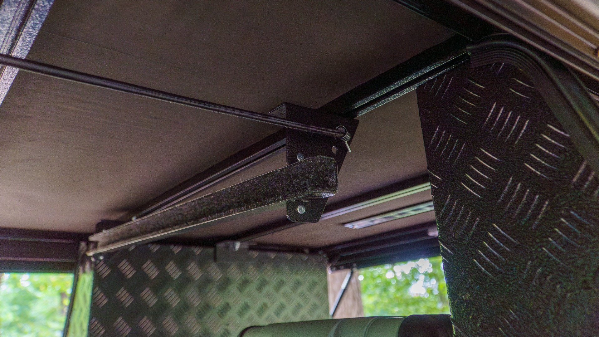 Met de Bushtech Tafel Houder kunt u de Bushtech Kampeertafel tegen de binnenkant van het dak van uw Bushtech canopy opbergen. De tafel neemt zo zeer weinig functionele ruimte in beslag, doordat deze helemaal bovenin de canopy wordt opgeborgen. De binnenzijde van houder is bekleed, zodat uw tafel niet zal beschadigen en makkelijk door de zijdeur in uw canopy eruit te schuiven is. De tafel wordt geborgd tegen verschuiven middels een eenvoudig elastiek met haken (spin).