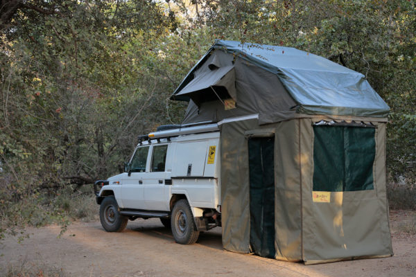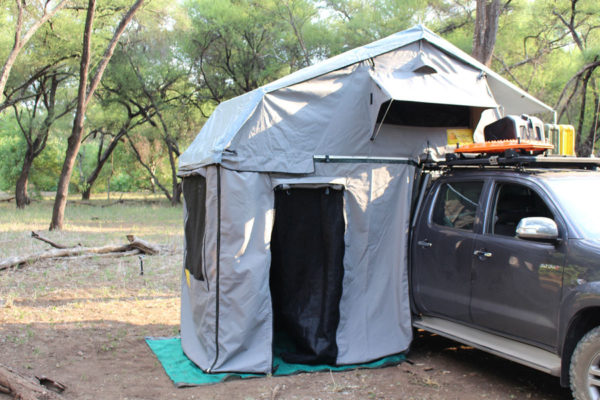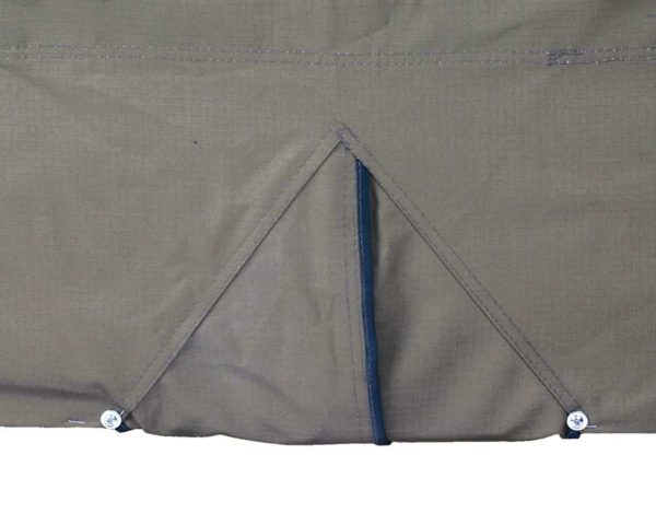 De ondertent panelen, welke ook gemaakt zijn van ripstop tentdoek, zijn perfect op maat. Ze hebben een deur over de volledige hoogte, een weerbestendig raam met muggengaas, een achterpaneel met ritssluiting, en een stevig grondzeil.