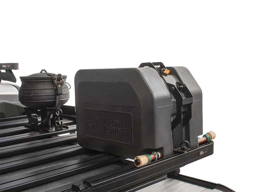 Deze afsluitbare beugel werkt met de Front Runner 42L watertank en het montagesysteem om je watertoevoer veilig en op je rek te houden.
