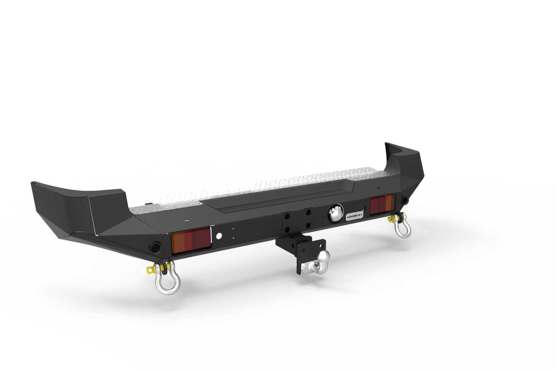 De achterbumper voor de Toyota FJ Cruiser bevat twee montagepoten die direct aan het chassis verbonden worden, dit zorgt voor een enorme stevigheid. Daarnaast is de bumper voorzien van Hi-Lift Jack punten.