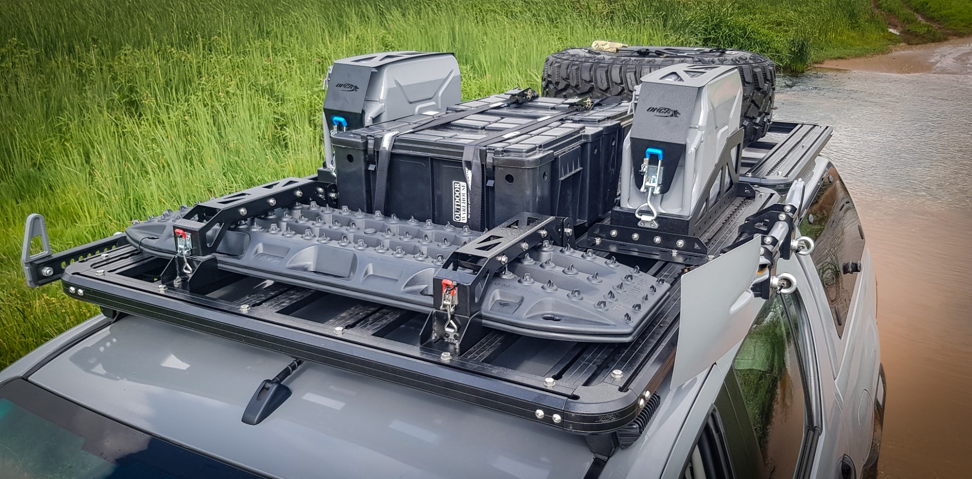 Op zoek naar een veilige manier om uw Maxtrax bovenop uw Onca dakrek te plaatsen? Deze Maxtrax beugelset is een stevige, flexibele manier om uw maxtrax op uw Onca dakrek te vervoeren.