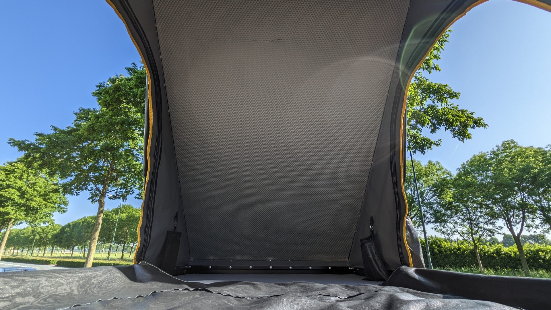 Het 50 mm matras van de lichtgewicht daktent bestaat uit koudschuim met een hoge dichtheid. Optioneel kunt u daaronder nog een 15mm isolerend anti-condens matras leggen, welke ook in onze webshop besteld kan worden. Het dak is ook voorzien van isolatie met hoge dichtheid, wat zorgt voor een gezellige en goed geïsoleerde slaapomgeving.