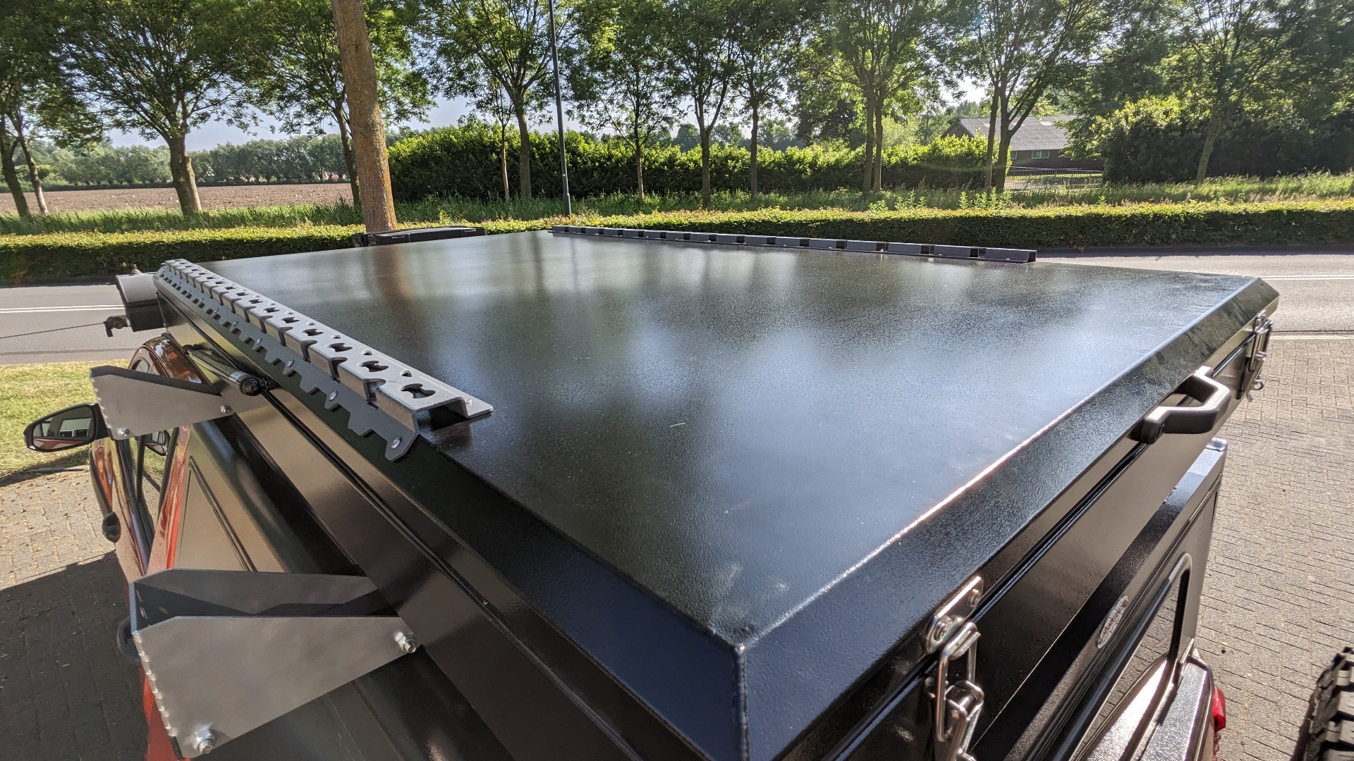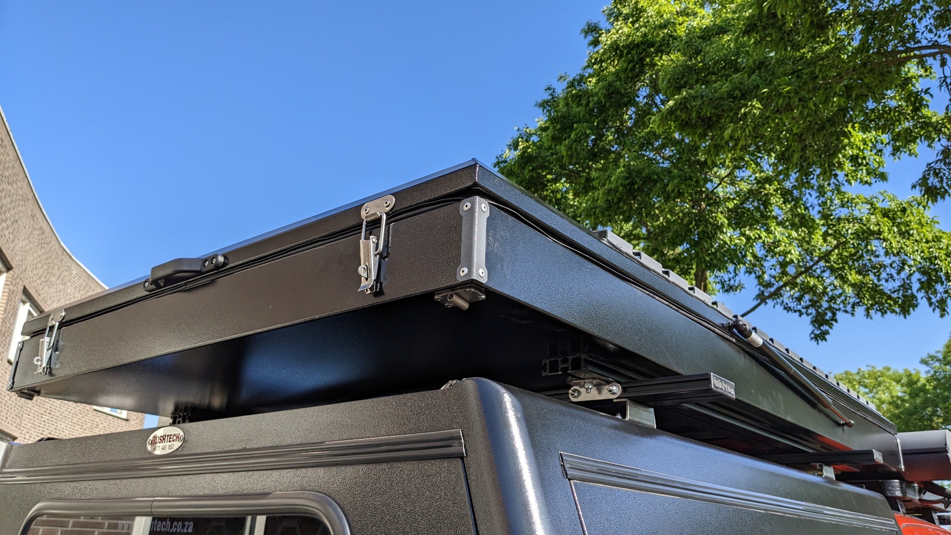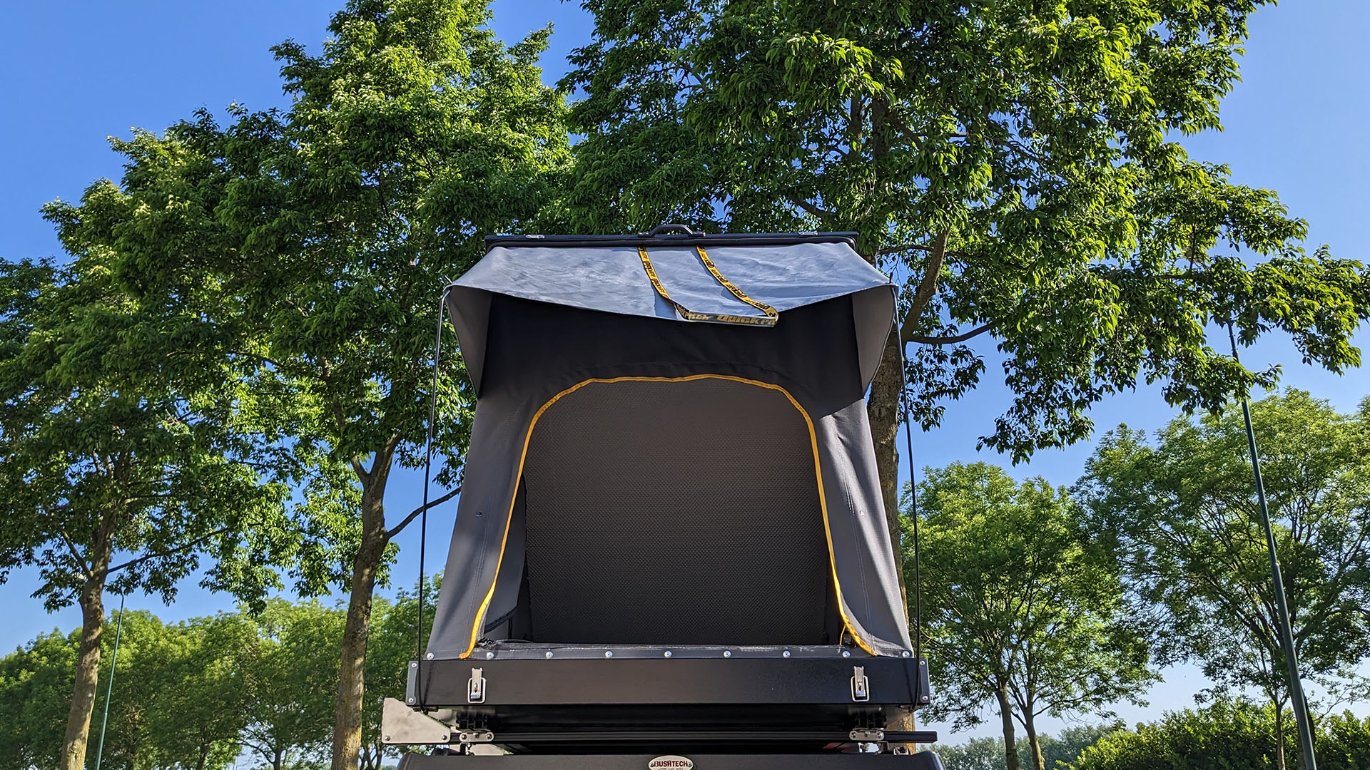 Het opzetten en inklappen van de tent is een fluitje van een cent dankzij de sterke gasveren. Bovendien is de tent uitgerust met twee handige rails aan de bovenkant, zodat u bagage kunt opbergen of zelfs zonnepanelen op uw voertuig kunt monteren.