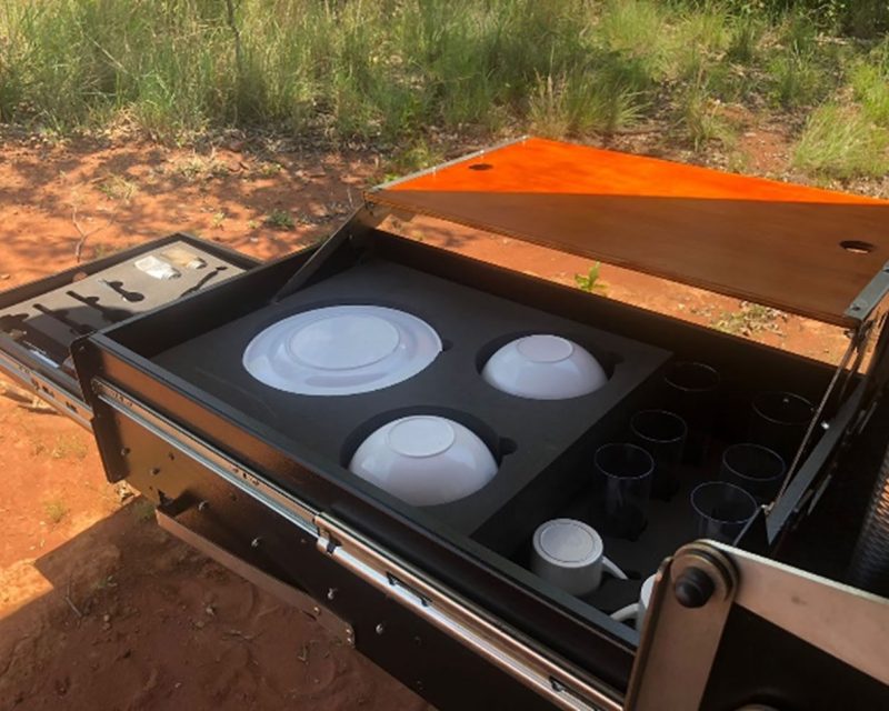 Deze Quick Pitch Drop Down Keuken Combi is met trots ontworpen en geproduceerd in Zuid-Afrika. Hier wordt alleen aluminium en roestvrij staal van de hoogste kwaliteit gebruikt. Dit betekent dat deze keukencombi bestand is tegen zware buitenomstandigheden. De heavy-duty rails zorgen voor stabiliteit en duurzaamheid, waardoor het een betrouwbare metgezel is op je overlandreizen.