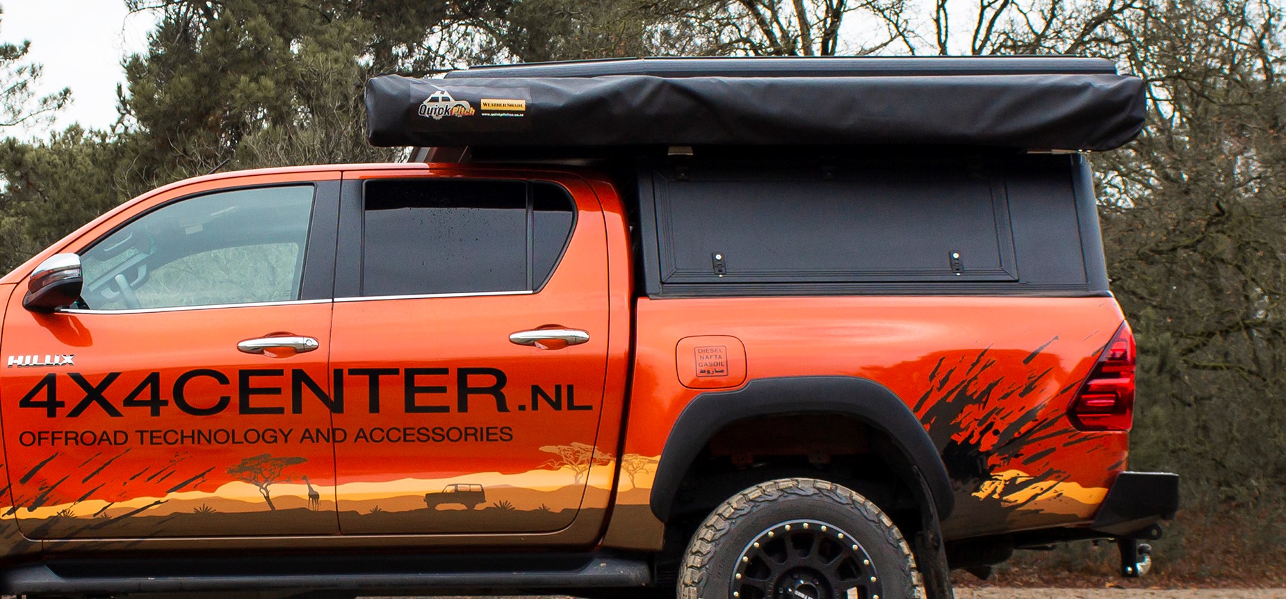 De luifel is in ingeklapte toestand opgeborgen in een aluminium box met een extra hoek aan de voorkant. De extra hoek beschermt het canvas tegen de armen die, bij offroad rijden, kunnen bewegen en hierdoor door het canvas zouden kunnen schuren.