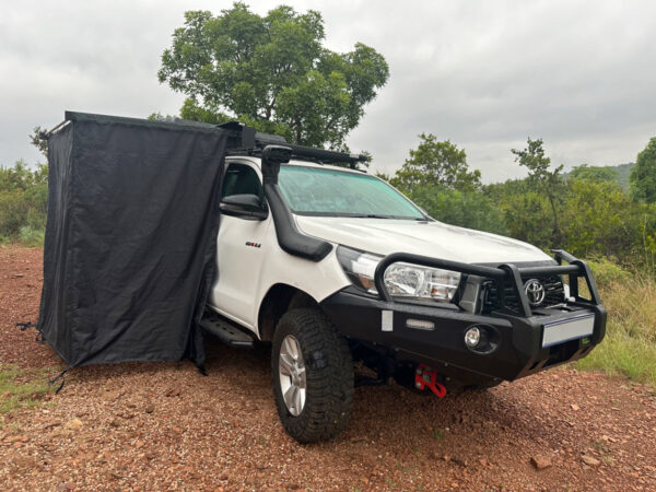 Aangezien niet alle voertuigen dezelfde hoogte hebben en Quick Pitch privacy wil bieden aan zowel grote als kleine gebruikers, hebben ze het douchegordijn voorzien van verstelbare riempjes. Hiermee kunt u ook gemakkelijk de hoogte aanpassen in geval van gebruik voor verschillende doeleinden.