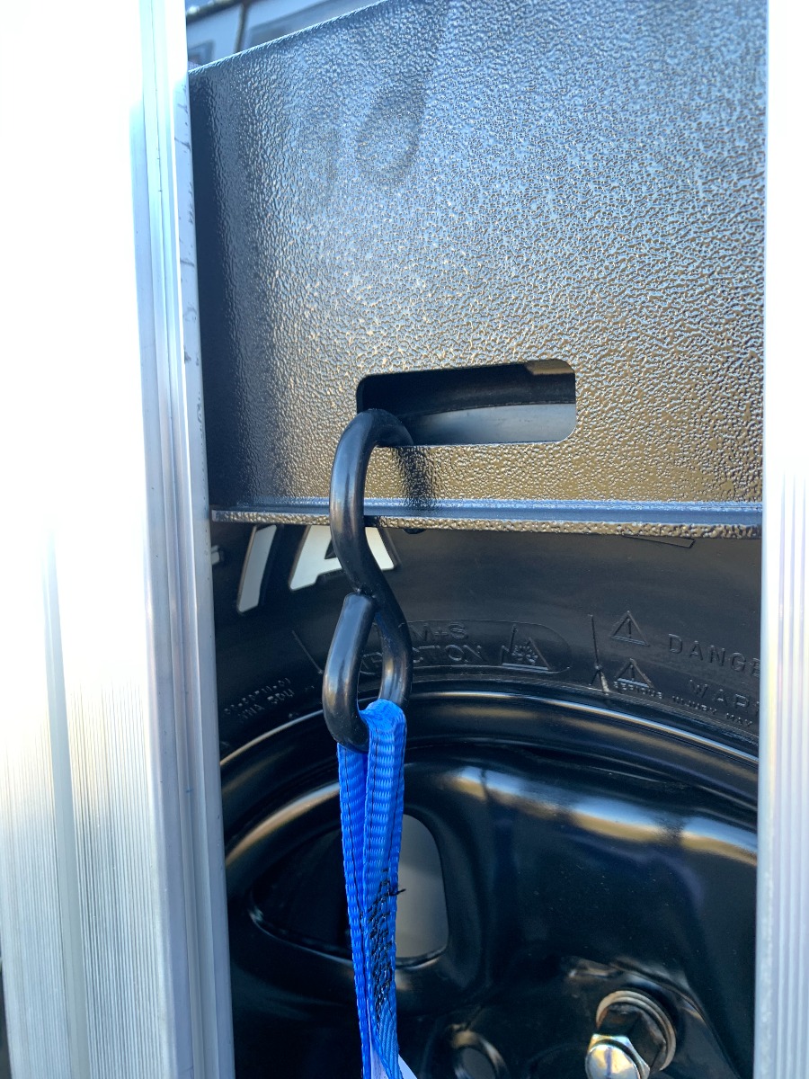 Aan de boven- en achterzijde van uw reservewiel komt een houder, deze houders klemmen aan de autoband. Deze houders zijn verstelbaar, hierdoor kunt u de Wheel Cargo Mount monteren op verschillende bandenmaten.