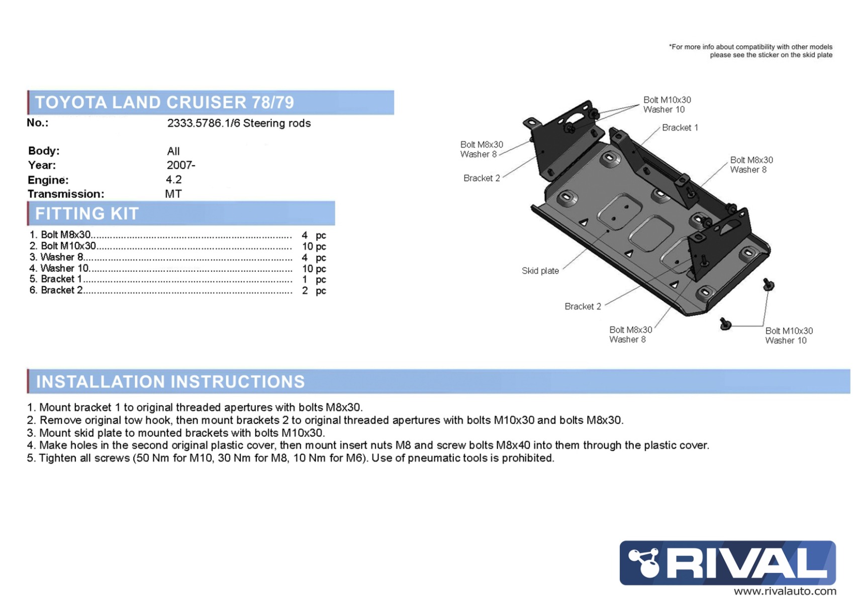 RIVAL Skidplate Stuurstangen Toyota Land Cruiser 78/79 6mm aluminium