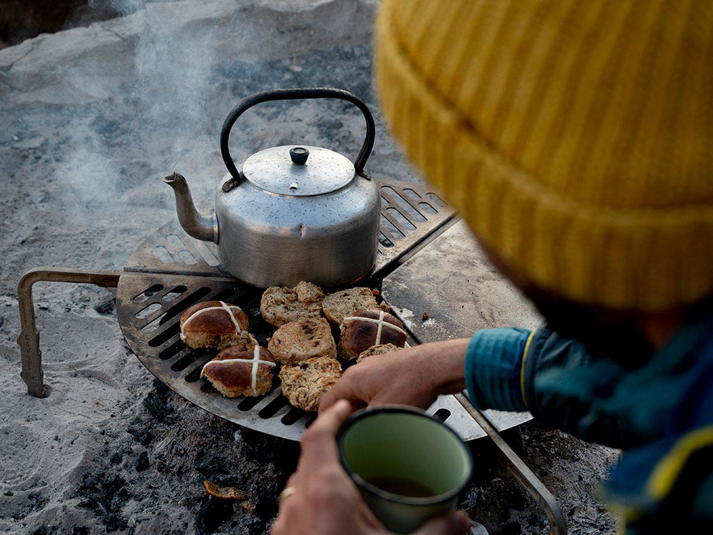 Dit ingenieuze, volledig roestvrijstalen vuurrooster past precies op het reservewiel en neemt vrijwel geen ruimte in.