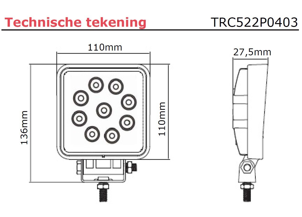Deze 27W led werklamp met 1710 lumen is uitermate geschikt voor het belichten van het werkgebied rondom uw vrachtwagen, tractor en graafmachine. Door de ruime voltage range van 9 – 33 volt is deze lamp uitermate geschikt om piekspanningen op te vangen. De lichtgewicht IP68 grafeen behuizing verzekert u van een lange levensduur.