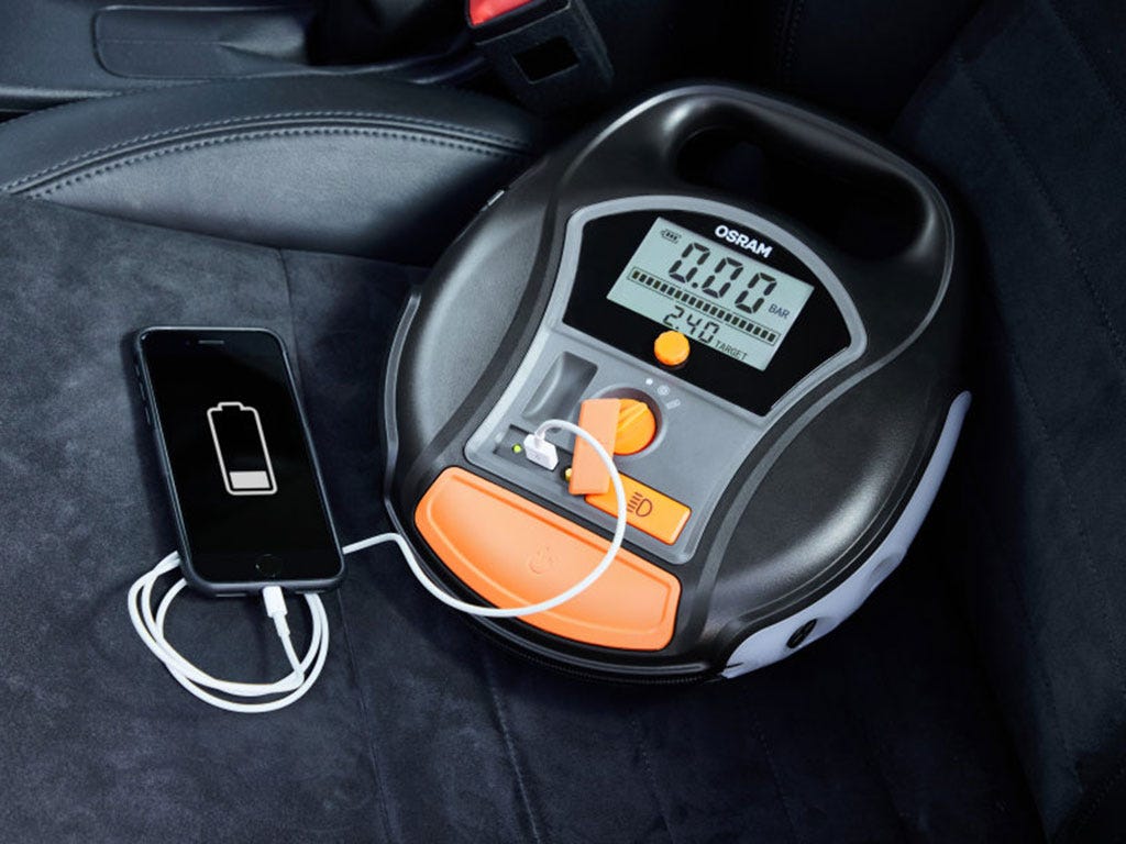 Breng uw banden snel op spanning met de snoerloze en oplaadbare OSRAM TYREinflate 6000. Het duurt slechts twee minuten om een 13” band op te pompen. Inclusief netsnoer of kan worden aangesloten op het 12V-stopcontact van uw auto. Kan ook worden gebruikt als powerbank. De perfecte bandenvuller voor onderweg.