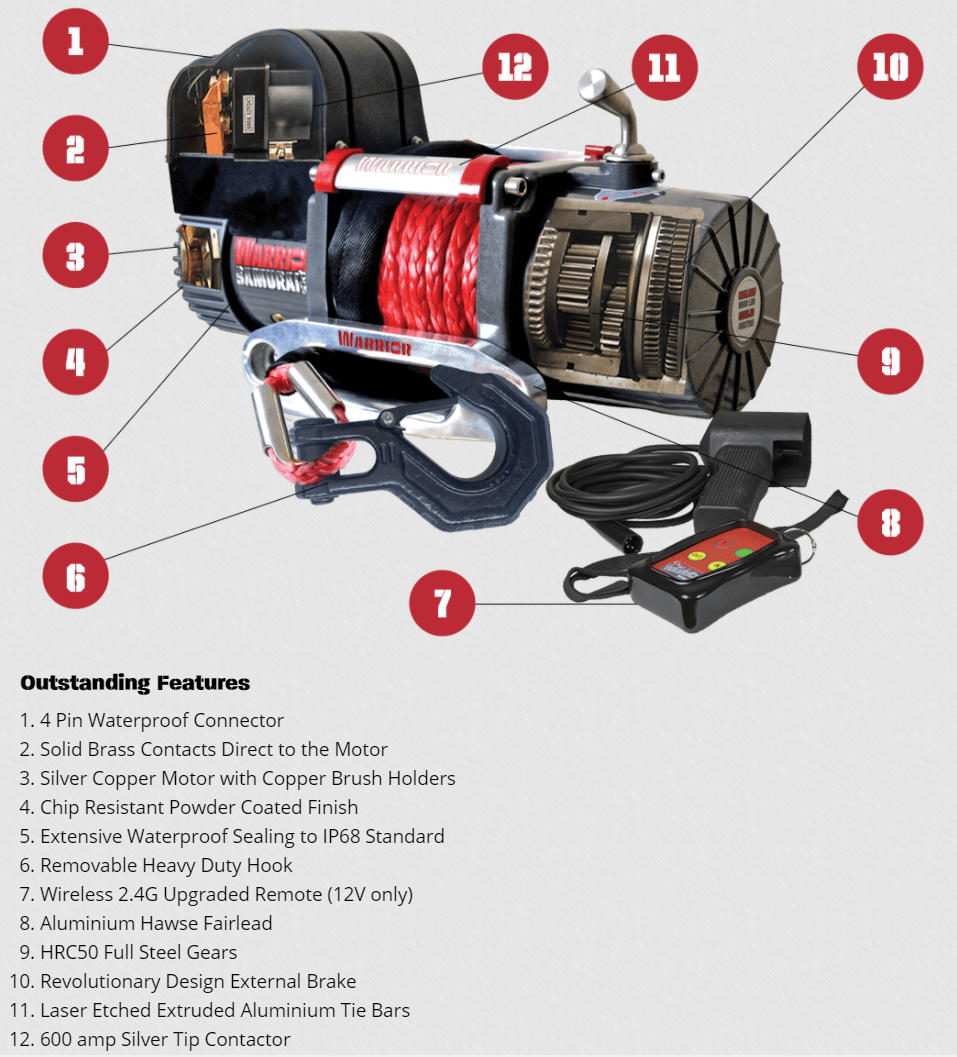 Warrior Winch heeft de Samurai-serie ontwikkeld voor recovery en 4×4-toepassingen, hier is de Samurai S9500SD uitstekend geschikt voor door de eigenschappen van deze lier.
