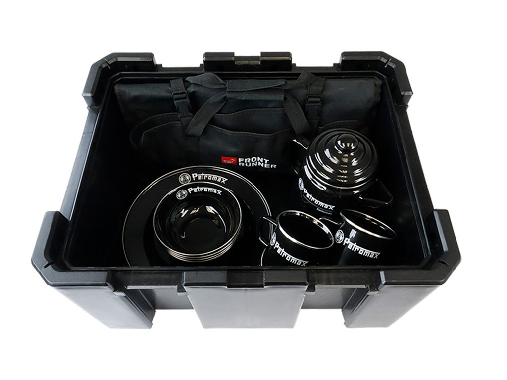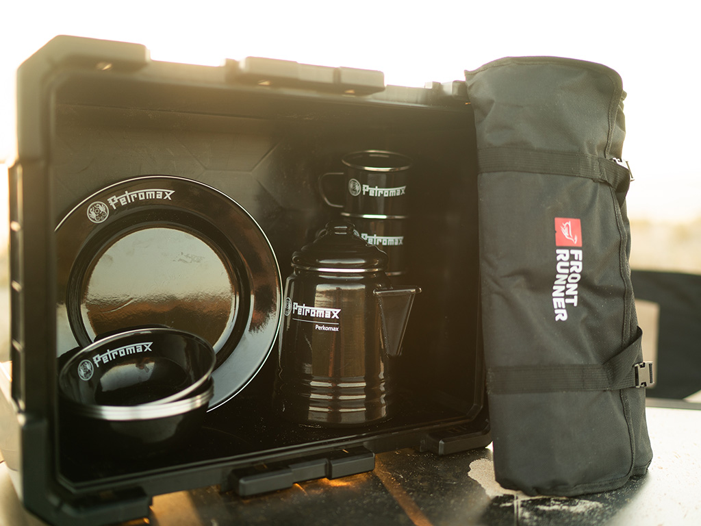 Til het gemak van buiten koken naar een hoger niveau met dit veelzijdige, hoogwaardige servies, bestek en koffieset, allemaal handig verpakt in een Wolf Pack Pro. Het beschikt over de unieke Perkomax Percolator, evenals vier mokken, twee borden en twee kommen, allemaal in krasbestendig zwart email. Het wordt ook geleverd met Front Runner’s hoogwaardige 24-delige keukengereiset.